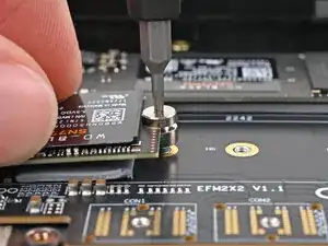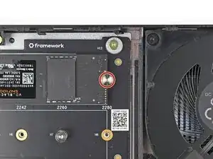 Используйте отвертку Framework, чтобы установить винт длиной 6,7 мм, фиксирующий SSD.