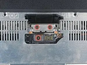 С помощью отвёртки Framework выкрутите два винта длиной 3.6 мм, фиксирующие плату вентилятора в корпусе расширительного отсека.