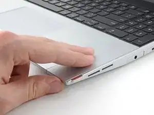 Нажмите на тачпад и сдвиньте его на место так, чтобы он выровнялся с нижним краем ноутбука.