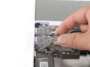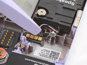 Используйте плоский конец отвертки Framework, чтобы вставить разъем динамика в его углубление.