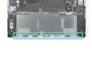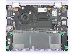 Используйте отвертку Framework, чтобы затянуть четыре винта Torx T5, удерживающих динамики.