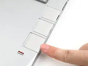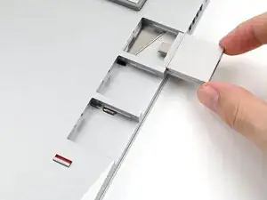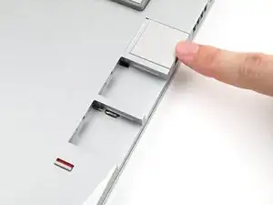 Выровняйте новую карту расширения по направляющей и вдавите её до тех пор, пока она не станет на уровне края ноутбука.