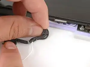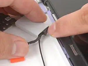 Используйте пальцы, чтобы осторожно развернуть дисплей, так чтобы он лежал экраном вниз на рабочей поверхности.