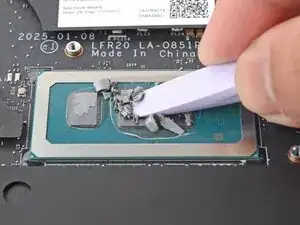 Используйте плоский конец отвертки Framework, чтобы соскоблить и удалить остатки термопасты с процессора.