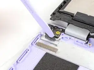 Используйте отвертку Framework, чтобы ввернуть четыре винта Torx T5 длиной 2,4 мм и закрепить две петли на верхней крышке.