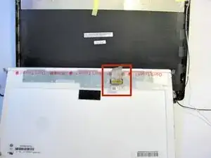 После переворачивания найдите шлейф, подключённый к задней части ЖК-экрана.