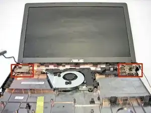 Найдите оба шарнира, которые соединяют монитор с нижней крышкой.