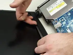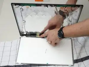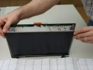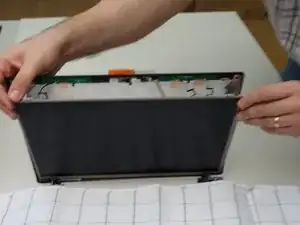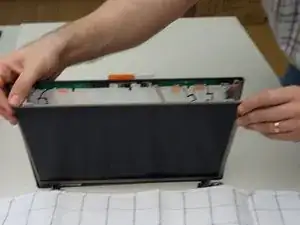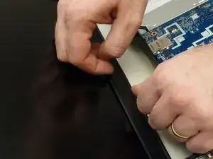 Продвигаясь по периметру рамки, отщёлкните крепления рамки, окружающей ЖК-экран.