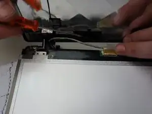 Удалите два верхних крепёжных винта, фиксирующие ЖК-экран к крышке.