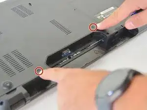 Откройте защёлку батареи с правой стороны.