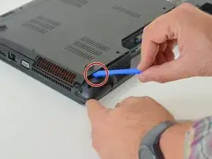 Подденьте крышку внизу слева инструментом для вскрытия iFixit.