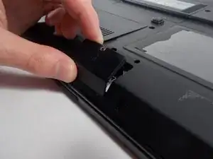 Положите ноутбук экраном вниз так, чтобы аккумуляторная батарея была обращена от вас. В нижней средней части корпуса вы увидите небольшую панель с обозначением Bluetooth.