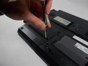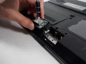 На панели, найденной на шаге 1, находится один винт. Используйте отвёртку с крестообразным наконечником, чтобы выкрутить его.