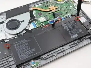 Удалите два винта Phillips длиной 4 мм, фиксирующих аккумулятор.