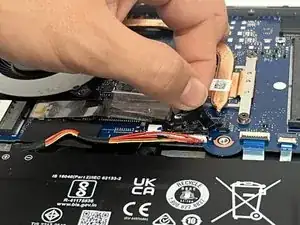 Удалите два куска скотча с аккумулятора и разъема аккумулятора.