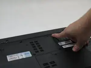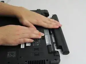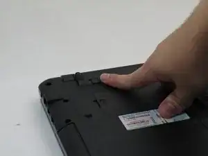 На нижней стороне ноутбука разблокируйте фиксатор безопасности, сдвинув его влево.