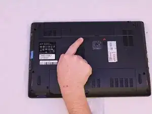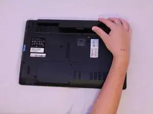 Переверните ноутбук так, чтобы нижняя сторона смотрела вверх.
