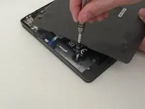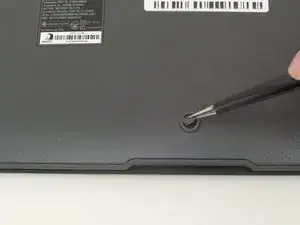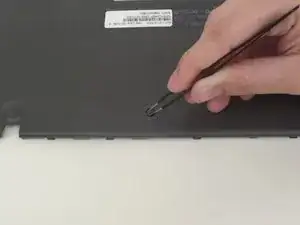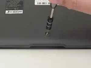 Удерживая заднюю панель от ноутбука, открутите винт по 4 мм с помощью отвертки PH0.