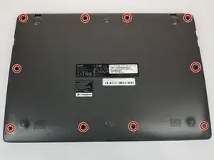 Удалите десять винтов Phillips #0 длиной 7 мм с нижней части.