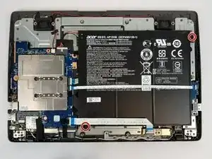 Удалите два винта Phillips #0 длиной 5 мм с аккумулятора.