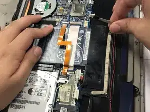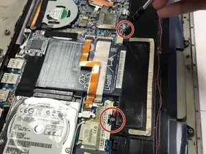 Крестовой отвёрткой Phillips #1 удалите два винта 5 мм, расположенных по обе стороны от аккумулятора.