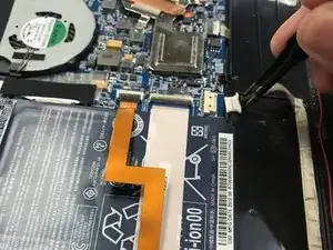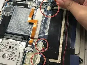 Отсоедините три белых разъёма от их гнёзд с помощью пинцета, сжав разъёмы и вытянув их наружу.