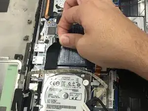 Снимите электрическую ленту, фиксирующую аккумулятор, отщёлкнув её вверх.