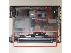 Когда ноутбук перевернут, вы увидите здесь аккумулятор.