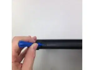 Осторожно вставьте пластиковый инструмент для вскрытия в шов и продвигайте вверх-вниз, чтобы отделить заднюю панель от передней. Повторяйте этот процесс по всему периметру ноутбука, пока все стороны не будут разделены.