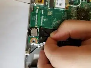 Потяните белый разъем к батарее, чтобы отсоединить его.