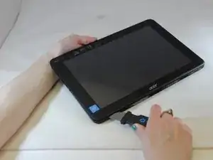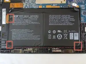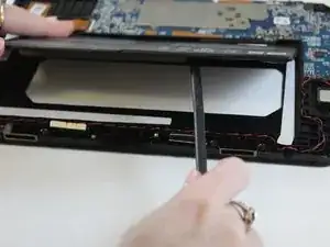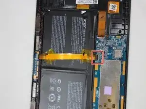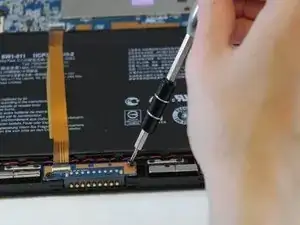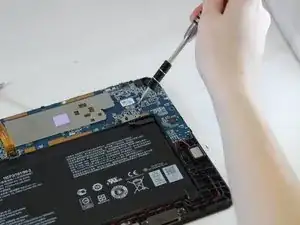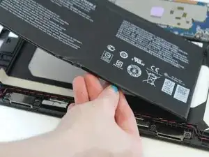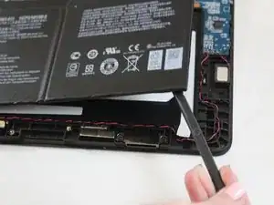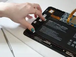 Используйте лопатку, чтобы отделить аккумулятор от клея, который фиксирует его на экране. Осторожно подденьте аккумулятор и извлеките его из планшета.