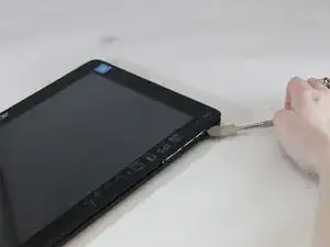 Начиная с угла планшета, используйте рычаг, чтобы создать зазор между экраном и задней крышкой.