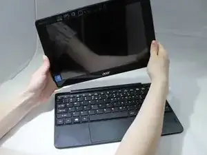 Чтобы отделить планшет от клавиатурной приставки, раскройте устройство и приподнимите планшетную часть с крепления клавиатуры.