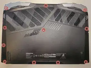 Используйте это руководство для ремонта или замены аккумулятора в вашем Predator Helios 300 PH315-53. Перед заменой деталей или ремонтом ноутбука необходимо сначала снять нижнюю крышку.