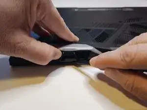 Прикладывайте лёгкое вверх направленное давление к противоположной вентиляционной решётке, пока ведёте лопатку вдоль задней части ноутбука.