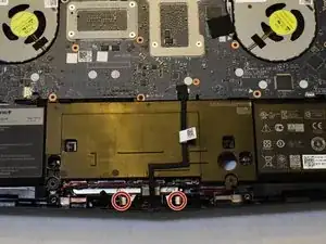 Используя отвертку Phillips #0, снимите винты, удерживающие аккумулятор. (3X 6 мм)