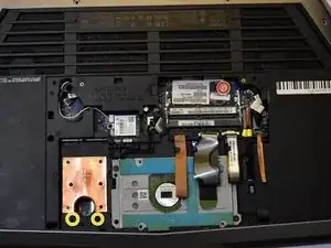 Двигайтесь медленно: силовой кабель спереди клавиатуры по-прежнему подключен к материнской плате, а также подключены ленточные кабели.