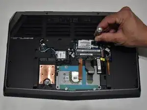Используя отвертку Phillips #0, удалите маленький винт 1X 3 мм, расположенный за местом, где была оперативная память.