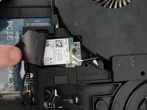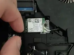 Открутите винт, удерживающий сетевую карту. Она выскочит под углом.