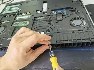 При необходимости используйте пластиковый инструмент для открытия, чтобы не повредить заднюю крышку при её снятии. Убедитесь, что вы отстегнули все зажимы, которые могут удерживать заднюю крышку на ноутбуке.