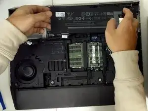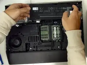 Отсоедините кабель аккумулятора от материнской платы.