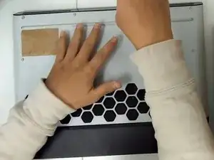 Положите спину ноутбука вверх.