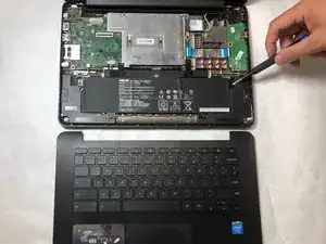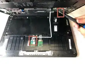 Используйте нейлоновую лопатку, чтобы поднять зажим на каждом проводном разъеме и отсоединить провода клавиатуры.
