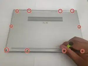 Используйте отвертку Torx T5, чтобы удалить одиннадцать винтов длиной 3 мм с нижней части устройства.