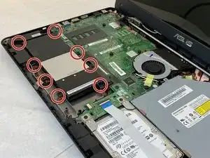 Отверните десять винтов длиной 18 мм, фиксирующих внешнюю оболочку ноутбука, с помощью отвертки Phillips #000.