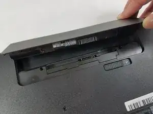 Переместите кнопку извлечения аккумулятора вправо. Аккумулятор будет извлечен.