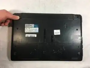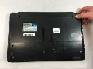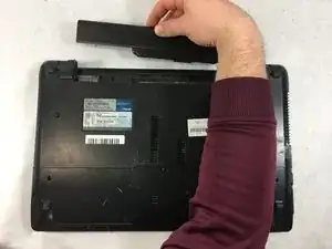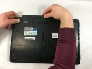 Переверните ноутбук, чтобы открылся доступ к аккумулятору.