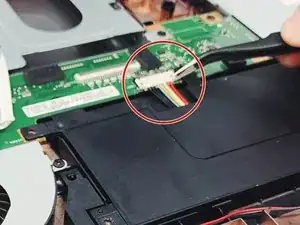 Осторожно отключите 8-контактное соединение аккумулятора от материнской платы.