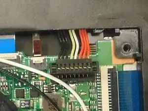Начинайте с верхнего правого угла, используя пластиковый инструмент для вскрытия, чтобы отделить крышку от ноутбука. Применяйте легкое давление, чтобы предотвратить ломкость пластика.