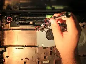 Снимите три винта 5,7 мм с креплений привода CD. Для откручивания используйте отвертку Phillips #1.